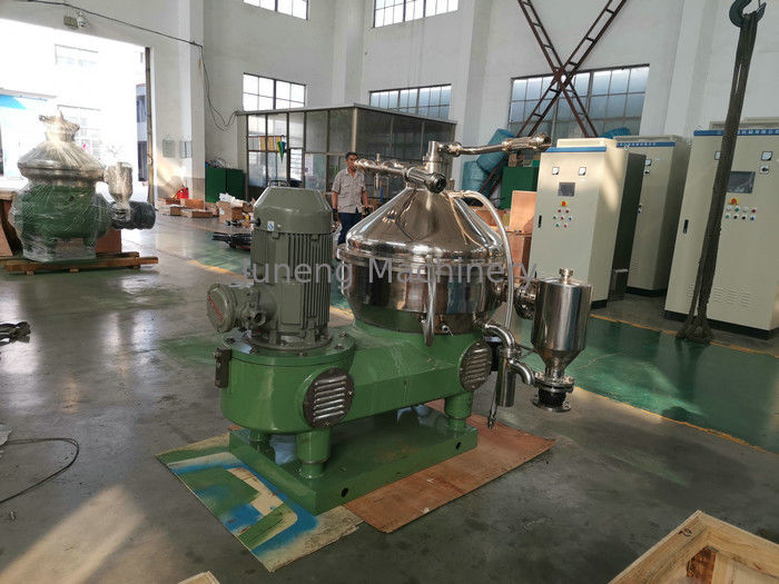 A bacia é conduzida pelo motor com os pares da engrenagem da embreagem e do parafuso de fricção e gerencie na alta velocidade em torno do mainshaft. O líquido conservado em estoque passa da entrada de carregamento center na parte superior do separador à parte inferior pela tubulação de carregamento e passa então através dos assentos do disco ao espaço da bacia. As partículas mais grandes da fase contínua da gravidade no líquido conservado em estoque são estabelecidas para baixo à parede da bacia sob a ação da força centrífuga e saído para fora do resíduo sob o controle da bacia lateral, a fase líquida é estabelecida inteiramente para baixo ao centro ao longo dos discos e drenada para fora pela bomba centrípeta.