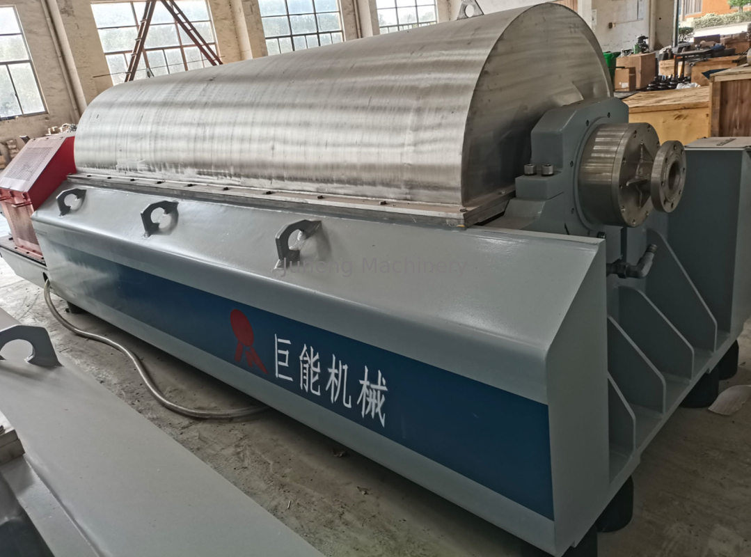 A sedimentação centrífuga é o princípio de funcionamento desta centrífuga, pode separar duas fases (líquido sólido em suspensão e líquido) ou três fases (líquido sólido-líquido-líquido),A fase sólida é empurrada para fora por espiral continuamenteEste equipamento é um equipamento constante e de elevada eficácia utilizado na separação sólido-líquido.